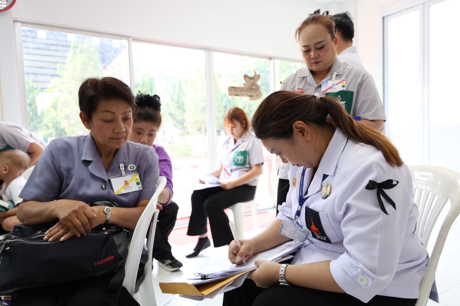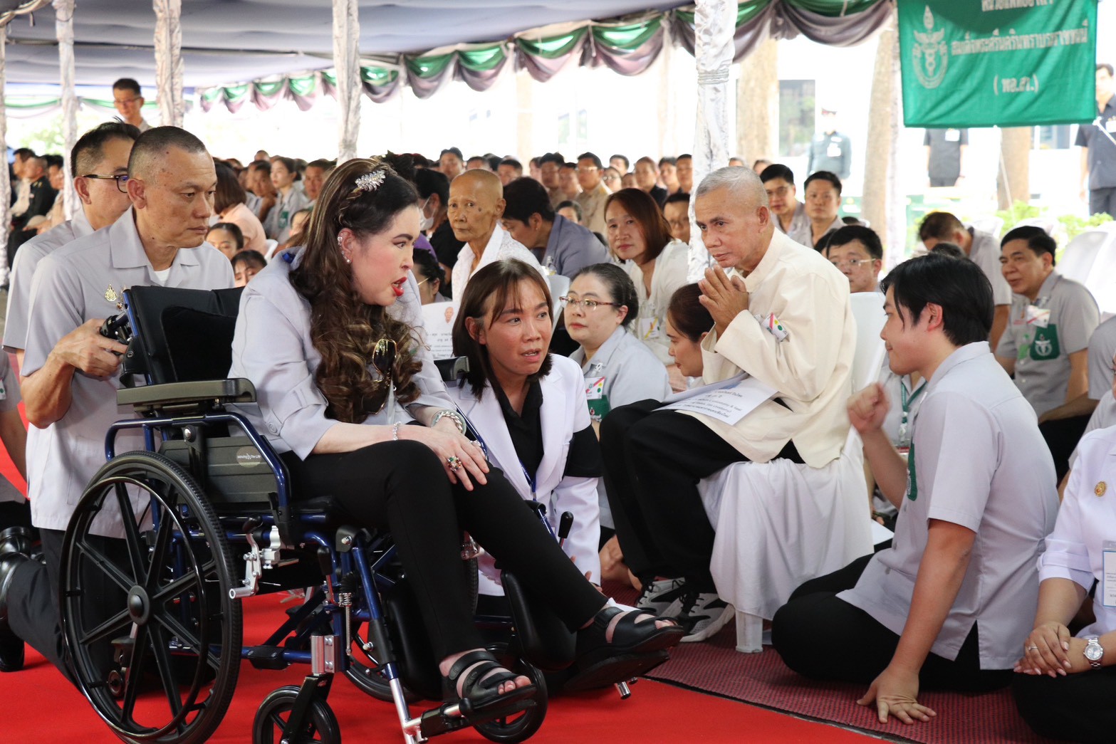 การนี้ ศาสตราจารย์ ดร. สมเด็จเจ้าฟ้า ฯ กรมพระศรีสวางควัฒน วรขัตติยราชนารี ทรงเยี่ยมผู้ป่วยนำเฝ้าจำนวน ๕ ราย ซึ่งป่วยด้วยโรคมะเร็งทวารหนัก มะเร็งปอด โรคหัวใจ โรคเนื้องอกในสมอง และสมองพิการแต่กำเนิด ในการนี้ มีพระปฎิสันถาร เพื่อซักประวัติถึงอาการของโรคกับผู้ป่วย และทรงมีพระวินิจฉัยร่วมกับแพทย์ที่ดูแลผู้ป่วย เพื่อหาแนวทางการรักษาในเบื้องต้นอย่างเหมาะสม โดยทรงรับผู้ป่วยทั้ง ๕ ราย ไว้เป็นคนไข้ในพระอนุเคราะห์ และส่งต่อไปรับการตรวจรักษาที่โรงพยาบาลจุฬาภรณ์ โรงพยาบาลมหาราชนครเชียงใหม่ โรงพยาบาลนครพิงค์ และสถาบันพัฒนาการเด็กราชนครินทร์ เชียงใหม่ พร้อมทั้งพระราชทานเงินให้กับผู้ป่วยเพื่อช่วยเหลือเป็นค่าใช้จ่ายในการเดินทางไปรับการตรวจรักษาและใช้จ่ายในชีวิตประจำวัน นอกจากนี้ โปรดให้ นักศึกษาชั้นปีที่ ๓ และอาจารย์จากคณะแพทยศาสตร์ศรีสวางควัฒน ราชวิทยาลัยจุฬาภรณ์ ออกหน่วยแพทย์เคลื่อนที่ร่วมกับหน่วยแพทย์ พอ. สว. เพื่อฝึกประสบการณ์การทำงานในพื้นที่จริงด้วย จากนั้น พระราชทานเข็มเครื่องหมายกรรมการ และอนุกรรมการ เข็มเครื่องหมาย พอ.สว. เข็มพระนามาภิไธย สว.และโล่ แก่เจ้าหน้าที่ และอาสาสมัคร พอ.สว. จังหวัดลำพูน เพื่อเป็นขวัญกำลังใจ