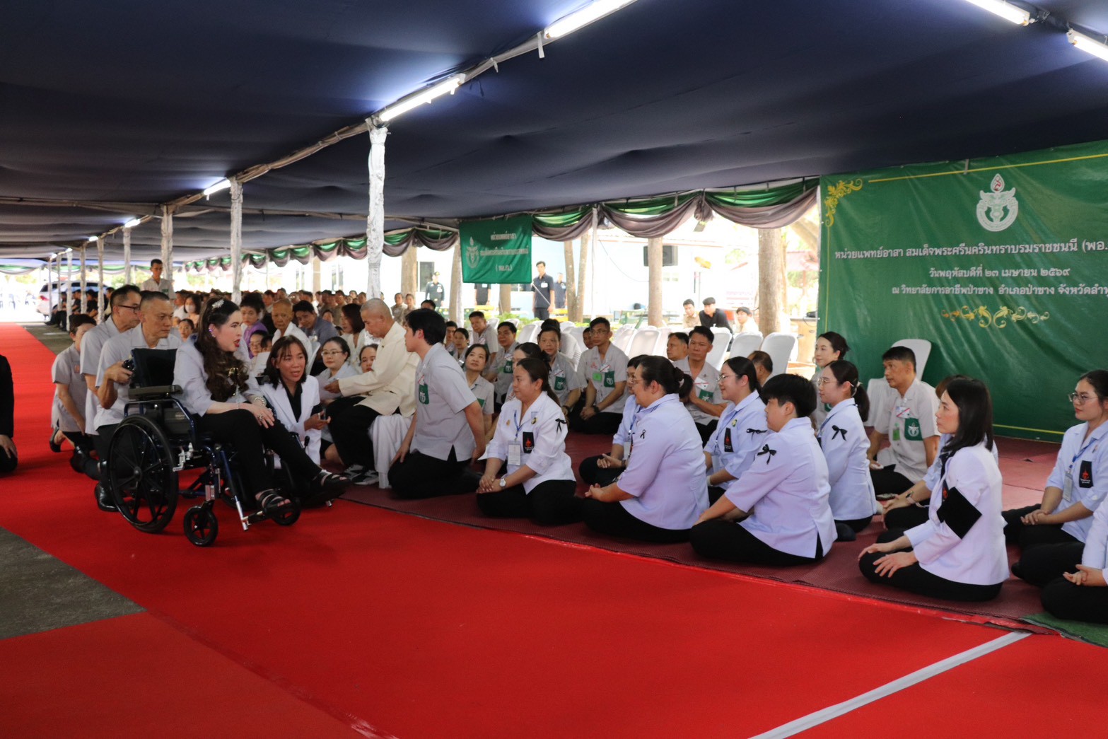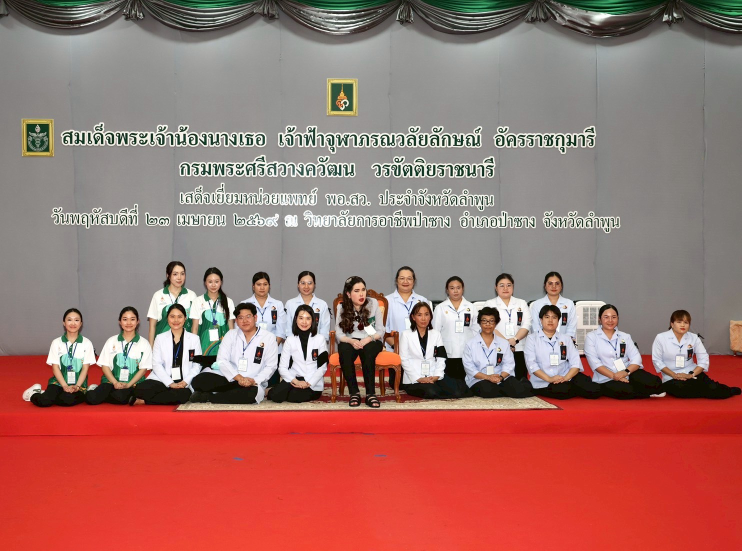 ๒๓ เมษายน ๒๕๖๙ ศาสตราจารย์ ดร. สมเด็จพระเจ้าน้องนางเธอ เจ้าฟ้าจุฬาภรณวลัยลักษณ์ อัครราชกุมารี กรมพระศรีสวางควัฒน วรขัตติยราชนารี องค์ประธานและนายกสภาราชวิทยาลัยจุฬาภรณ์ เสด็จไปทรงเยี่ยมราษฎรและทอดพระเนตรการปฏิบัติงานของหน่วยแพทย์อาสาสมเด็จพระศรีนครินทราบรมราชชนนี ณ วิทยาลัยการอาชีพป่าซาง อำเภอป่าซาง จังหวัดลำพูน โอกาสนี้ ทรงโปรดให้หน่วยแพทย์พระราชทานโรงพยาบาลจุฬาภรณ์ ราชวิทยาลัยจุฬาภรณ์ ร่วมออกหน่วยแพทย์เคลื่อนที่ในพื้นที่จังหวัดลำพูน โดยมี ศาสตราจารย์ แพทย์หญิงชนิสา โชติพานิช รองผู้อำนวยการโรงพยาบาลจุฬาภรณ์ พร้อมด้วยทีมแพทย์บุคลากรโรงพยาบาลจุฬาภรณ์ ราชวิทยาลัยจุฬาภรณ์ เข้าร่วมปฏิบัติงานร่วมกับหน่วยแพทย์ พอ.สว.จังหวัดลำพูน ,สาธารณสุขจังหวัดลำพูน, โรงพยาบาลลำพูน, โรงพยาบาลป่าซาง, โรงพยาบาลลี้, โรงพยาบาลทุ่งหัวช้าง, โรงพยาบาลเวียงหนองล่อง, โรงพยาบาลบ้านโฮ่ง และจิตอาสาพระราชทาน ให้บริการตรวจรักษาประชาชนที่เจ็บป่วย อาทิ การตรวจโรคทั่วไป ทันตกรรม แพทย์แผนไทย การคัดกรองมะเร็งเต้านม โดยแพทย์ พยาบาล และบุคลากรทางการแพทย์ โดยในวันนี้มีผู้เข้ารับบริการจำนวน ๒๖๒ ราย