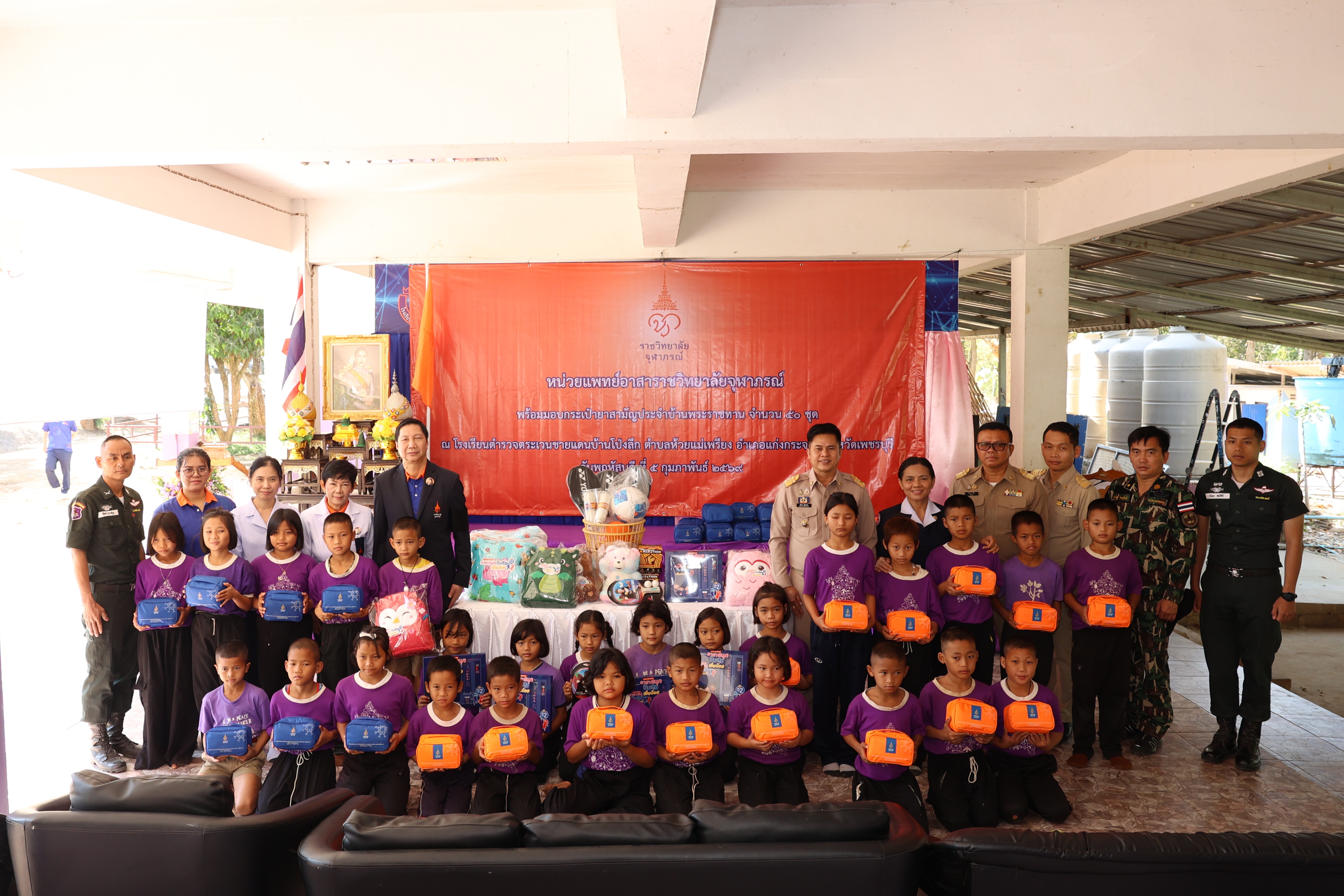 ราชวิทยาลัยจุฬาภรณ์ จัดหน่วยแพทย์อาสาราชวิทยาลัยจุฬาภรณ์ ออกให้บริการตรวจสุขภาพ พร้อมมอบกระเป๋ายาพระราชทานและสิ่งของอุปโภคบริโภคพร้อมอุปกรณ์กีฬาแก่โรงเรียนตำรวจตระเวนชายแดนบ้านโป่งลึก ตำบลห้วยแม่เพรียง อำเภอแก่งกระจาน จังหวัดเพชรบุรี